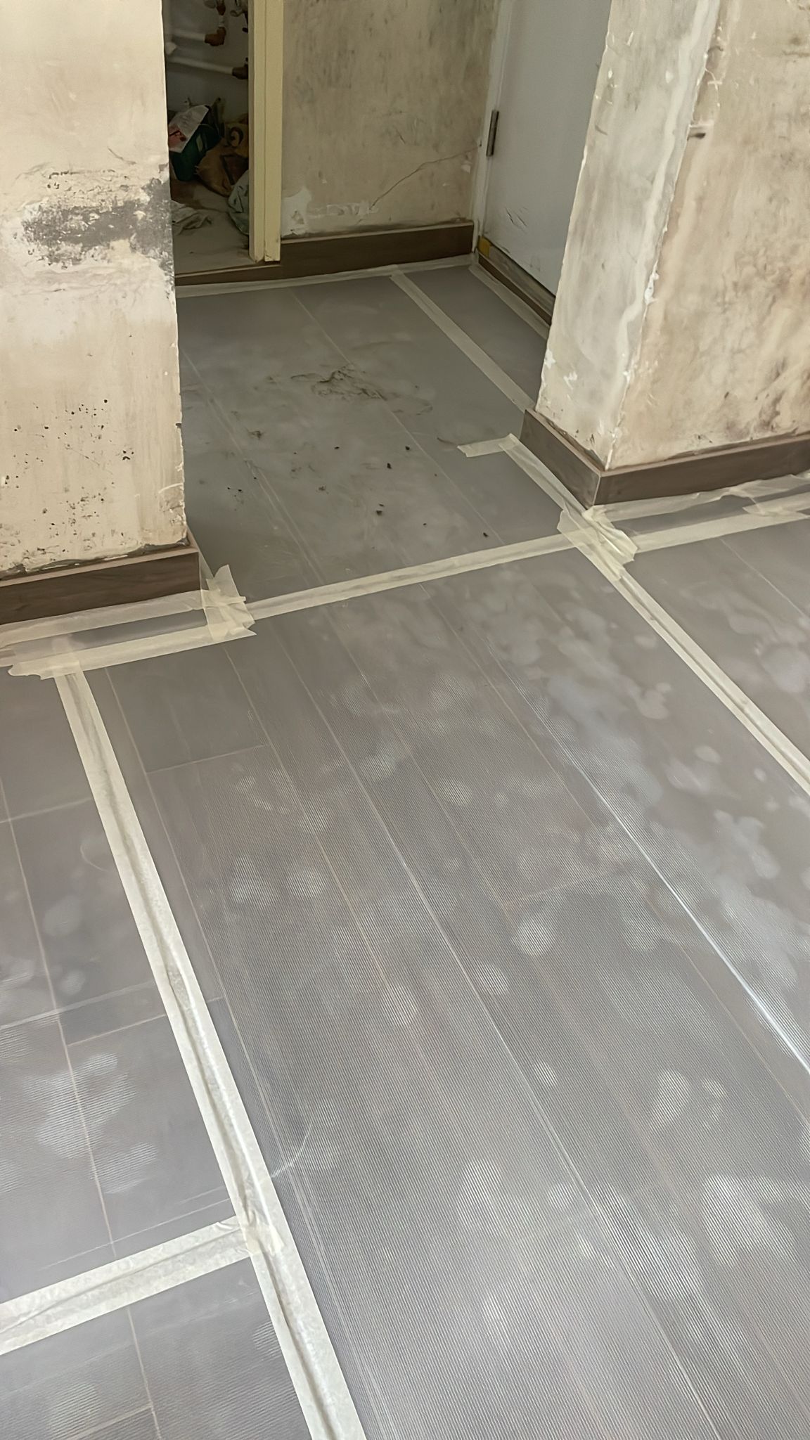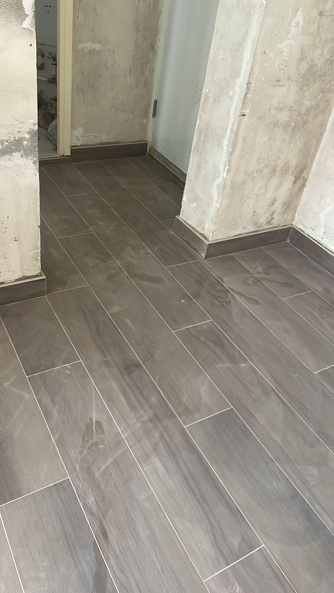 Project: Masonry Work – Laying wood-grain tiles in the living room and bedrooms (random laying)