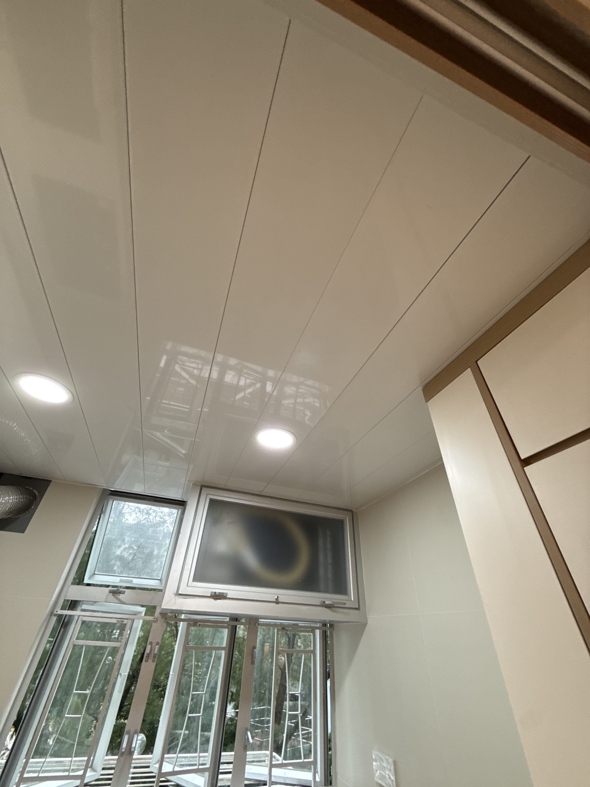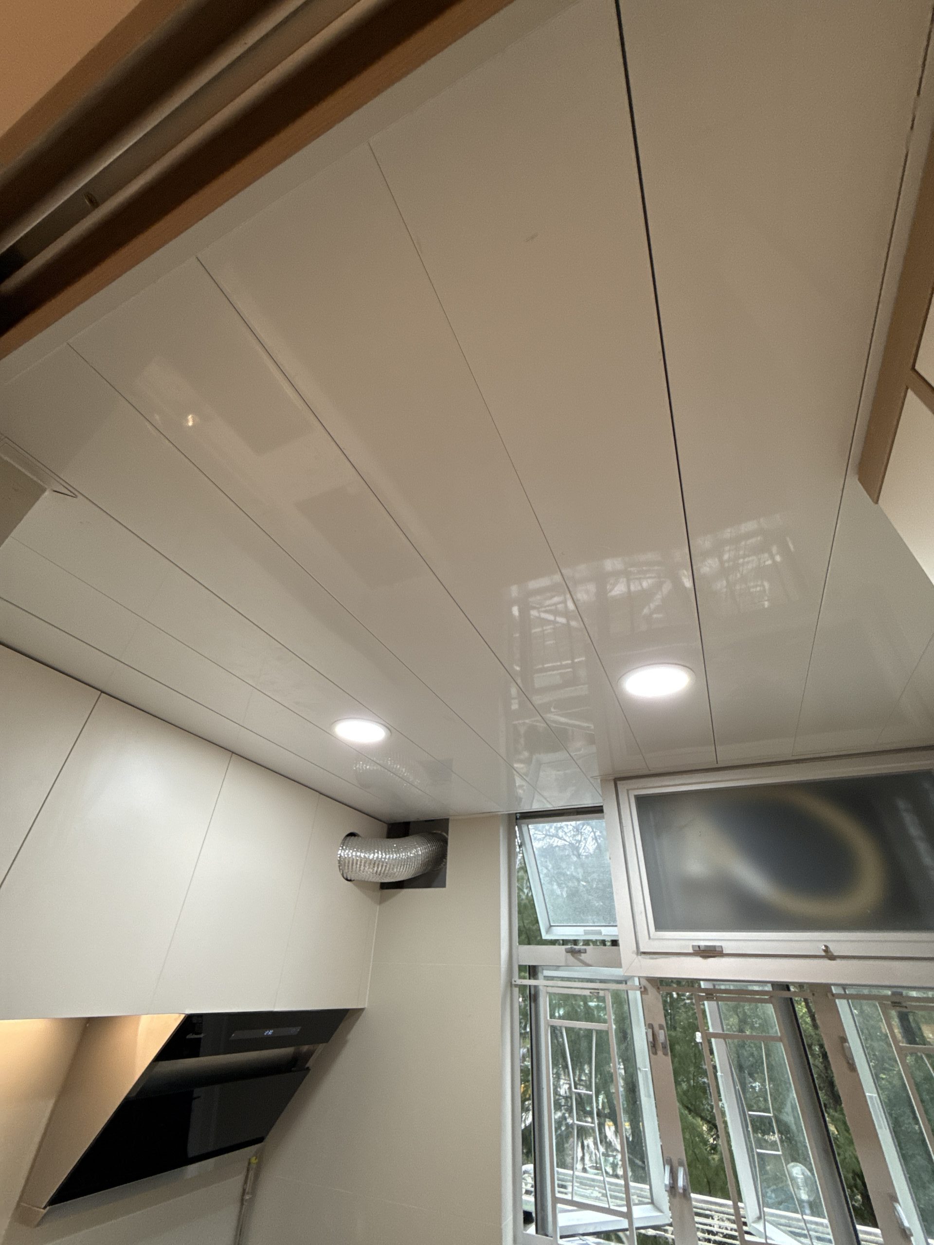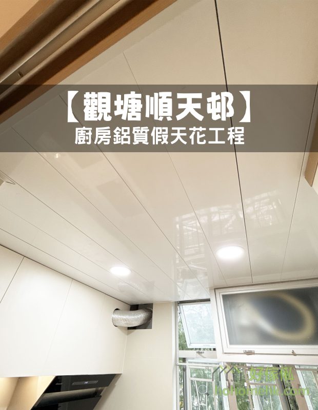 The aluminum false ceiling project of the kitchen in Shun Tin Estate, Kwun Tong, is connected with two lamps