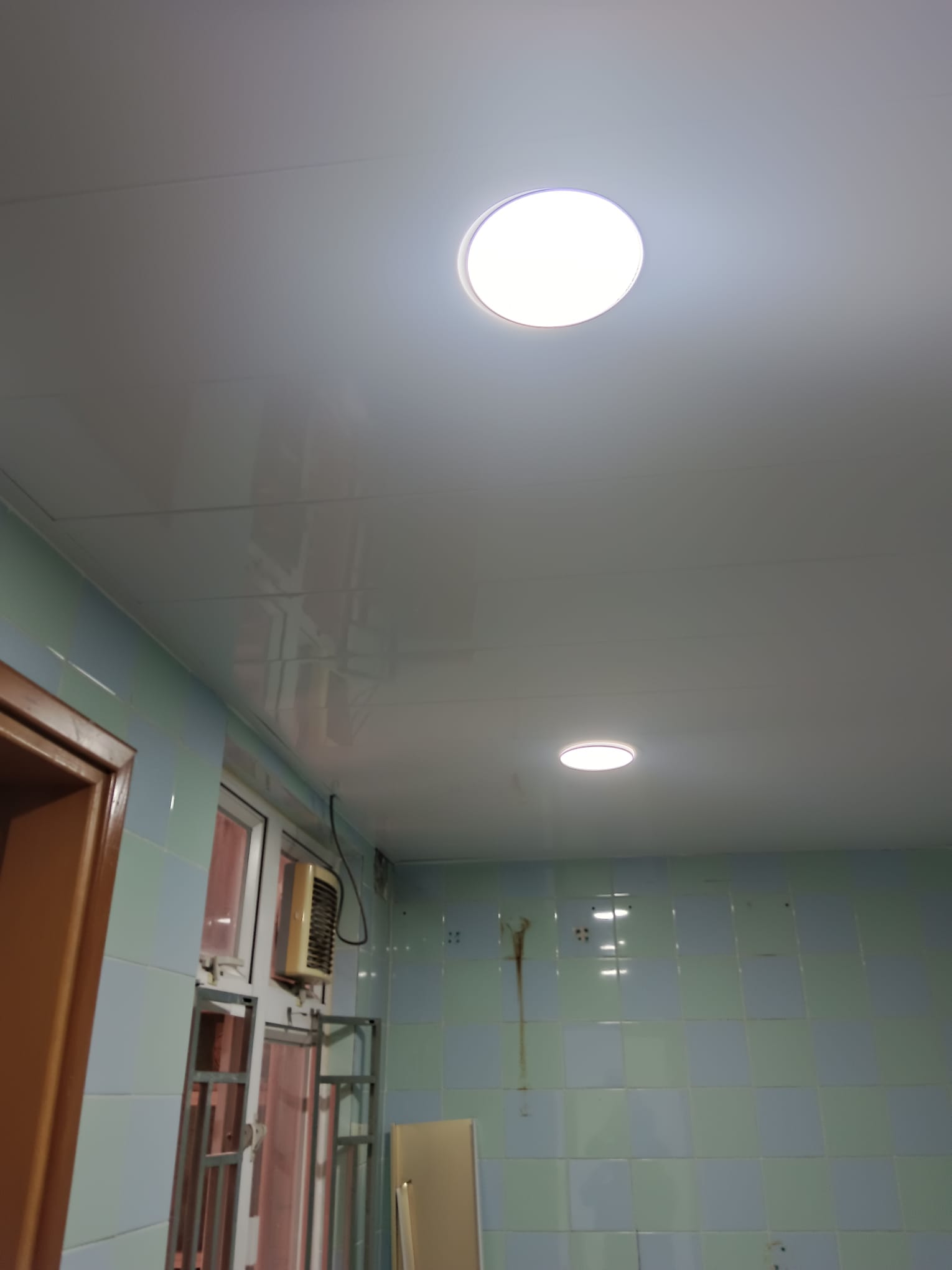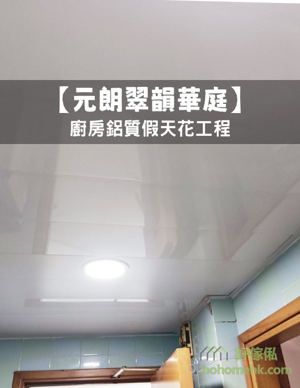 The aluminum false ceiling project in the kitchen of Chui Yun Wah Ting in Yuen Long is equipped with two lamps