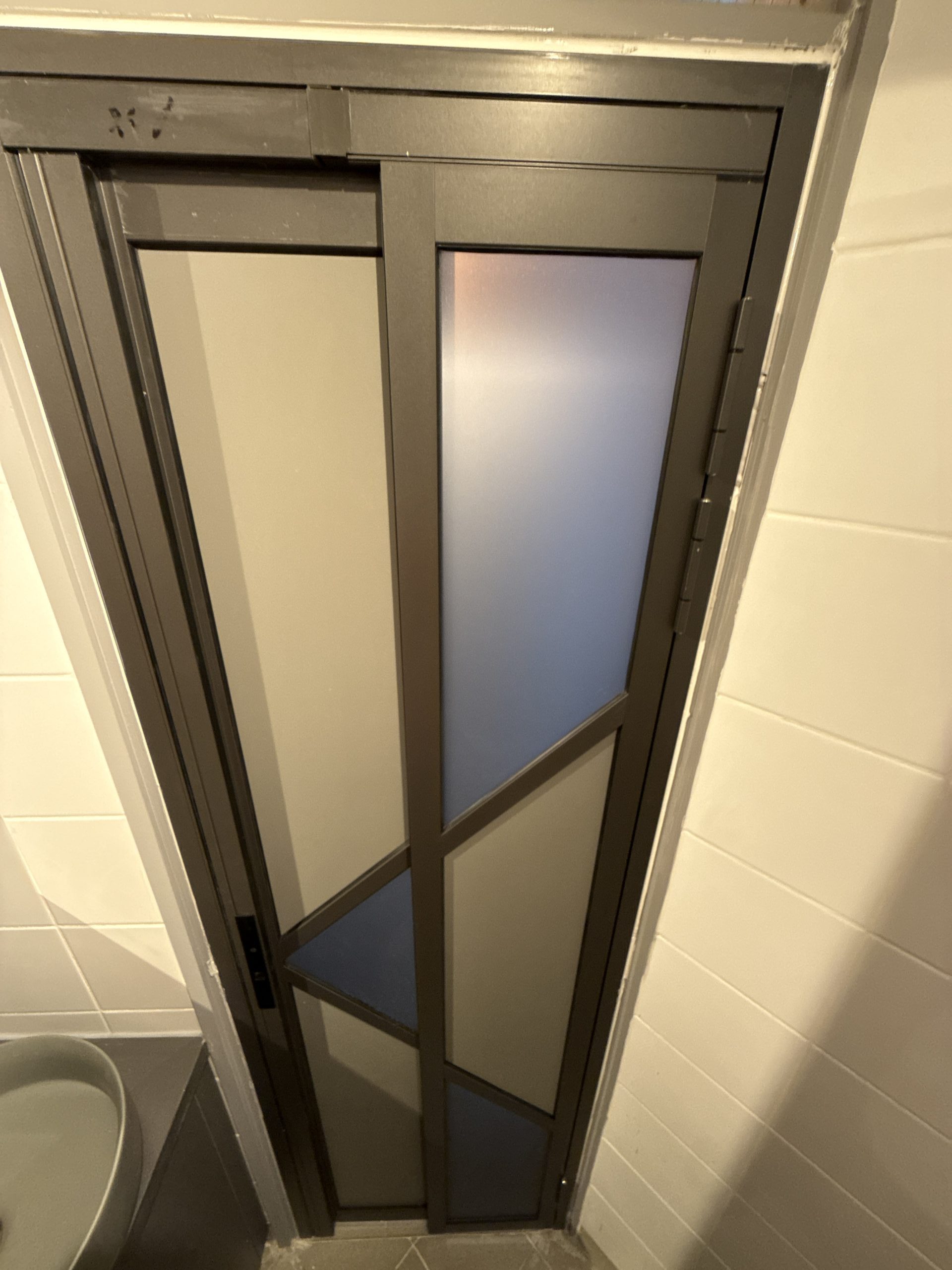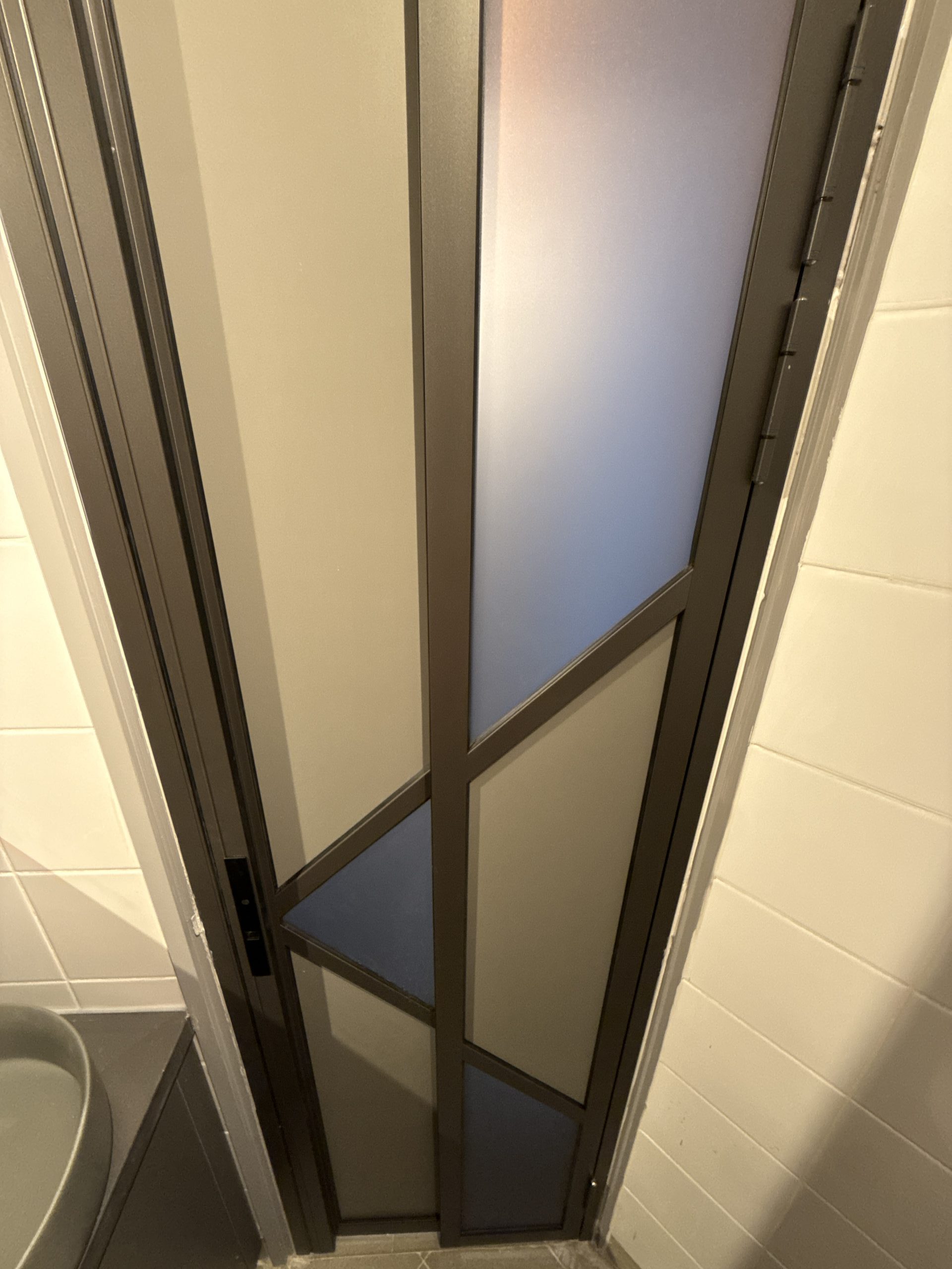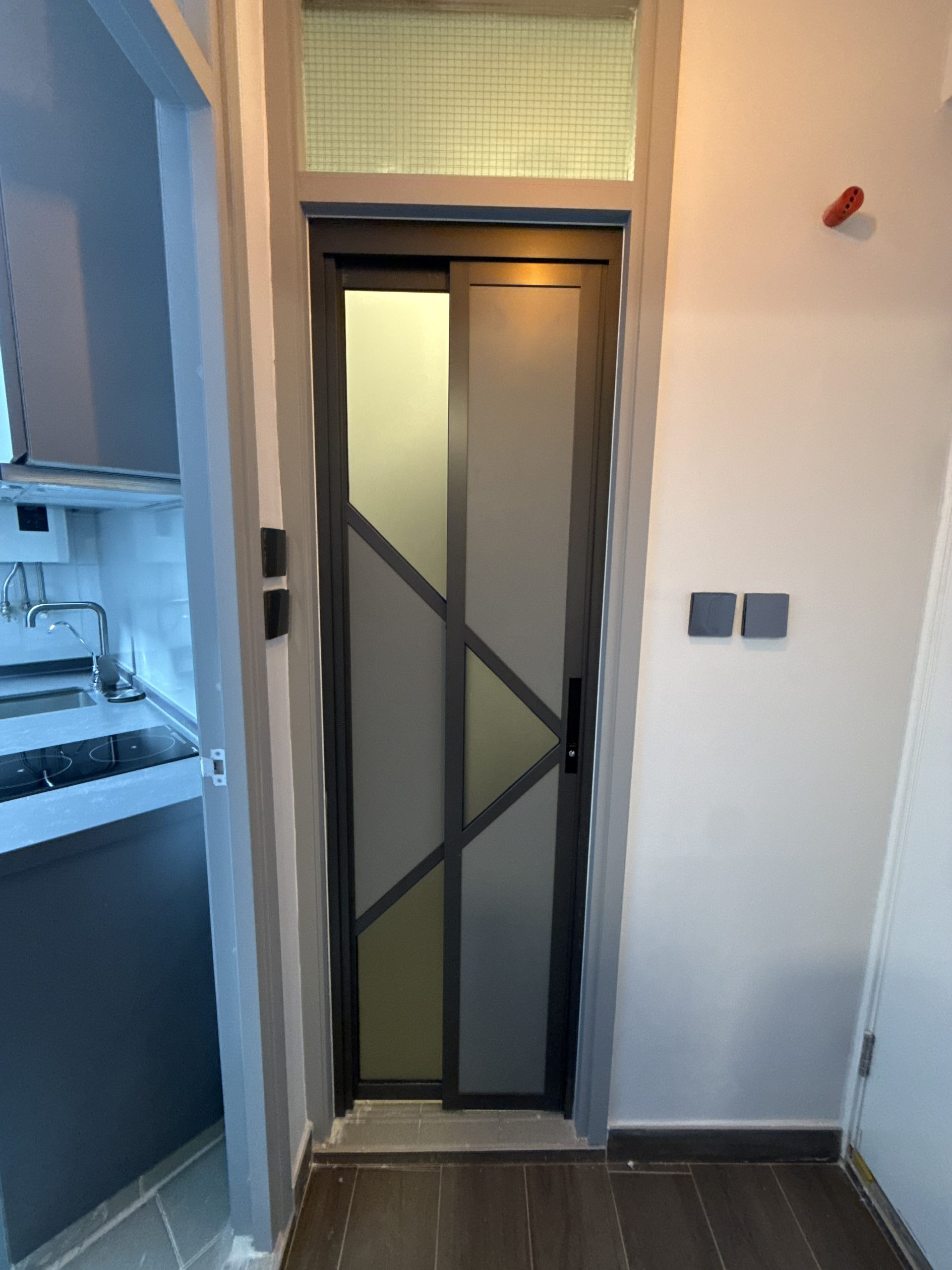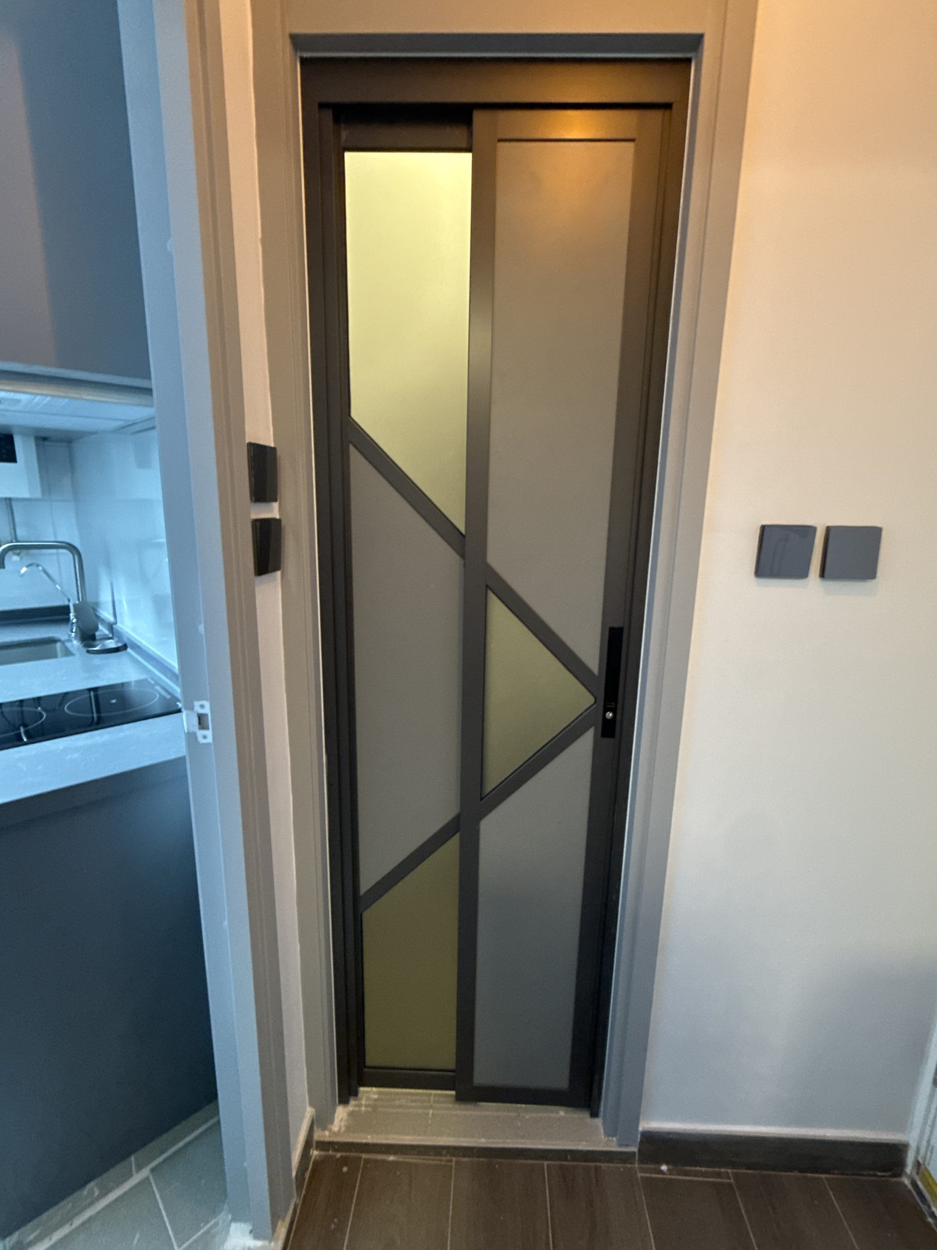 If the door opening is not large enough, a PD door can be custom-made for the toilet instead of a regular sliding door, which saves more space while reserving a larger opening position. When customizing PD doors, using frosted glass and opaque aluminum plates in the toilet can enhance privacy.