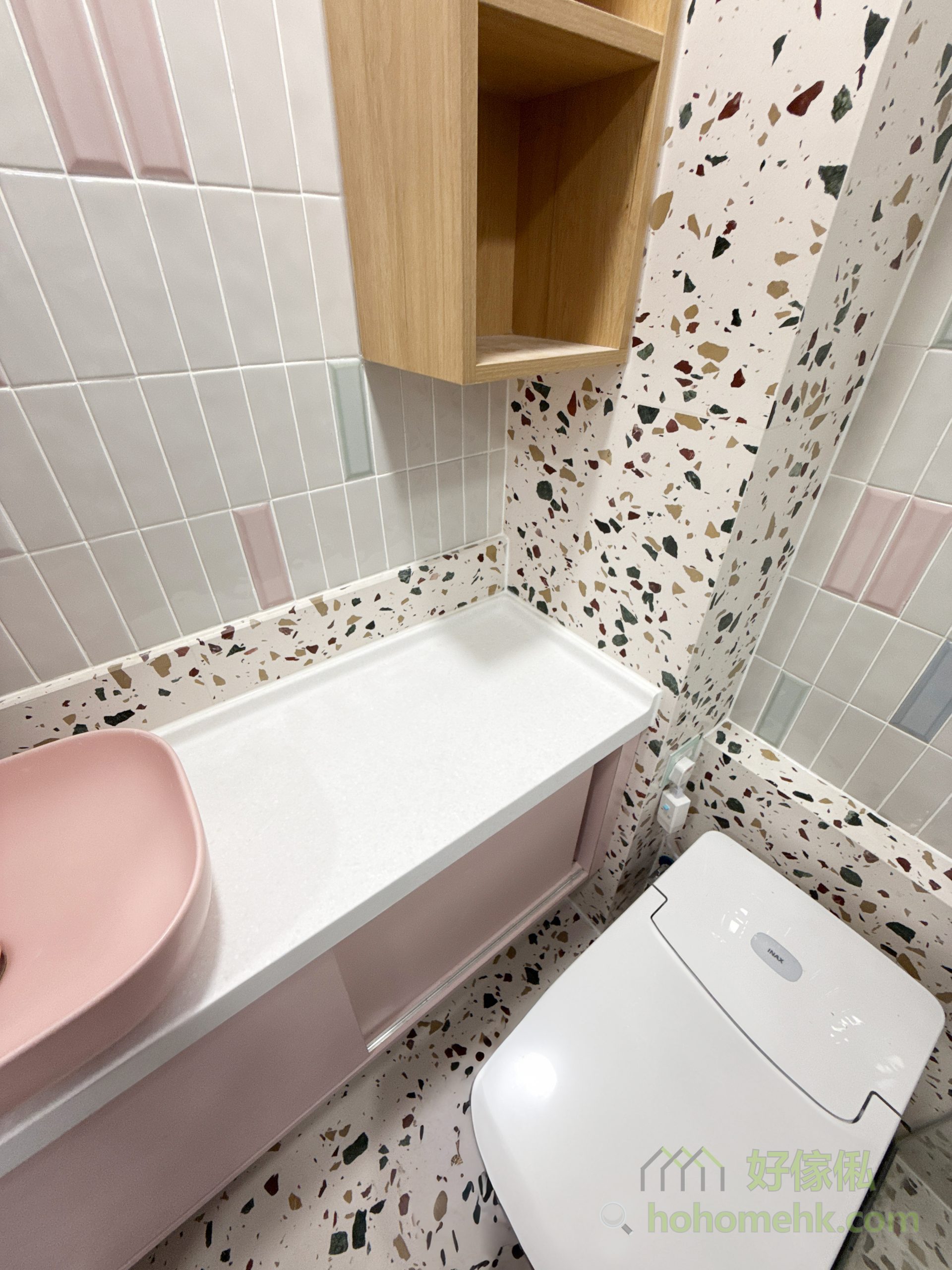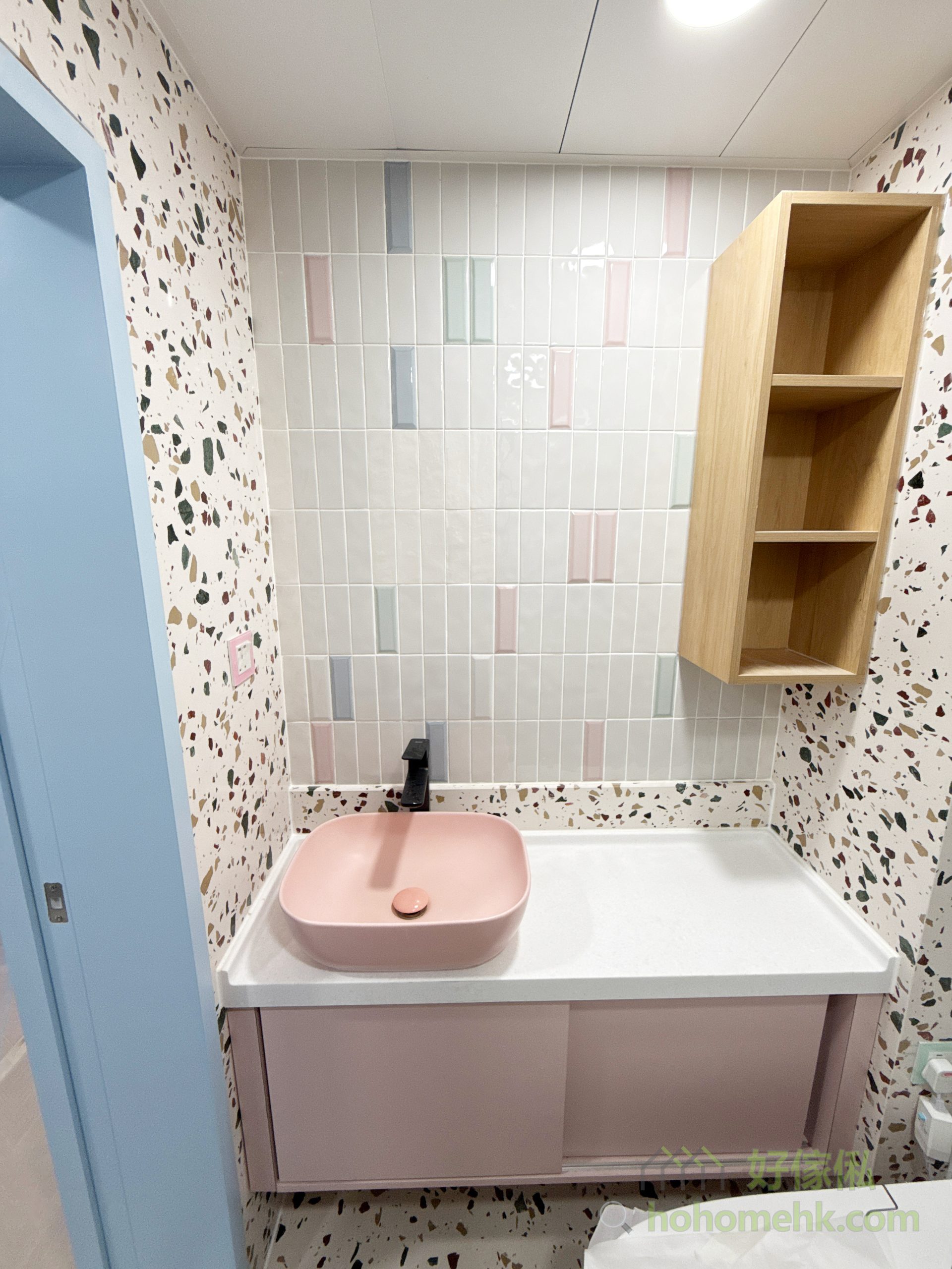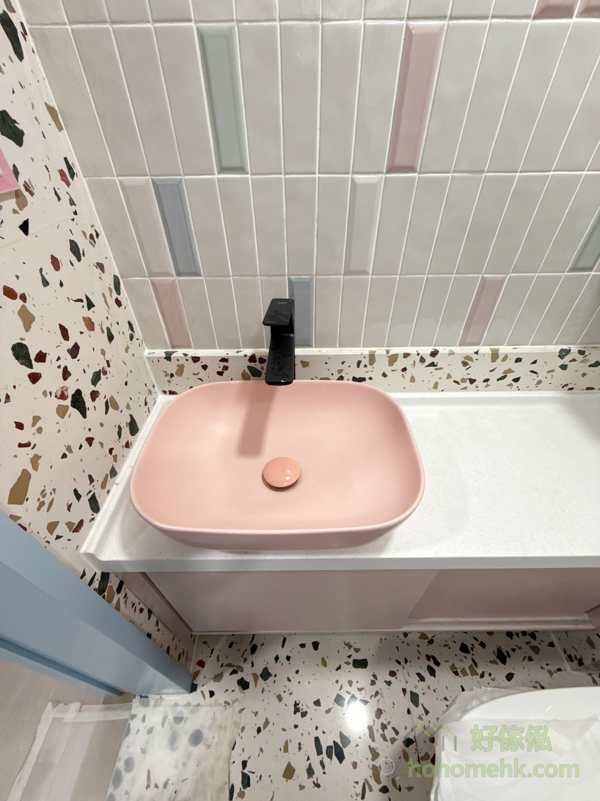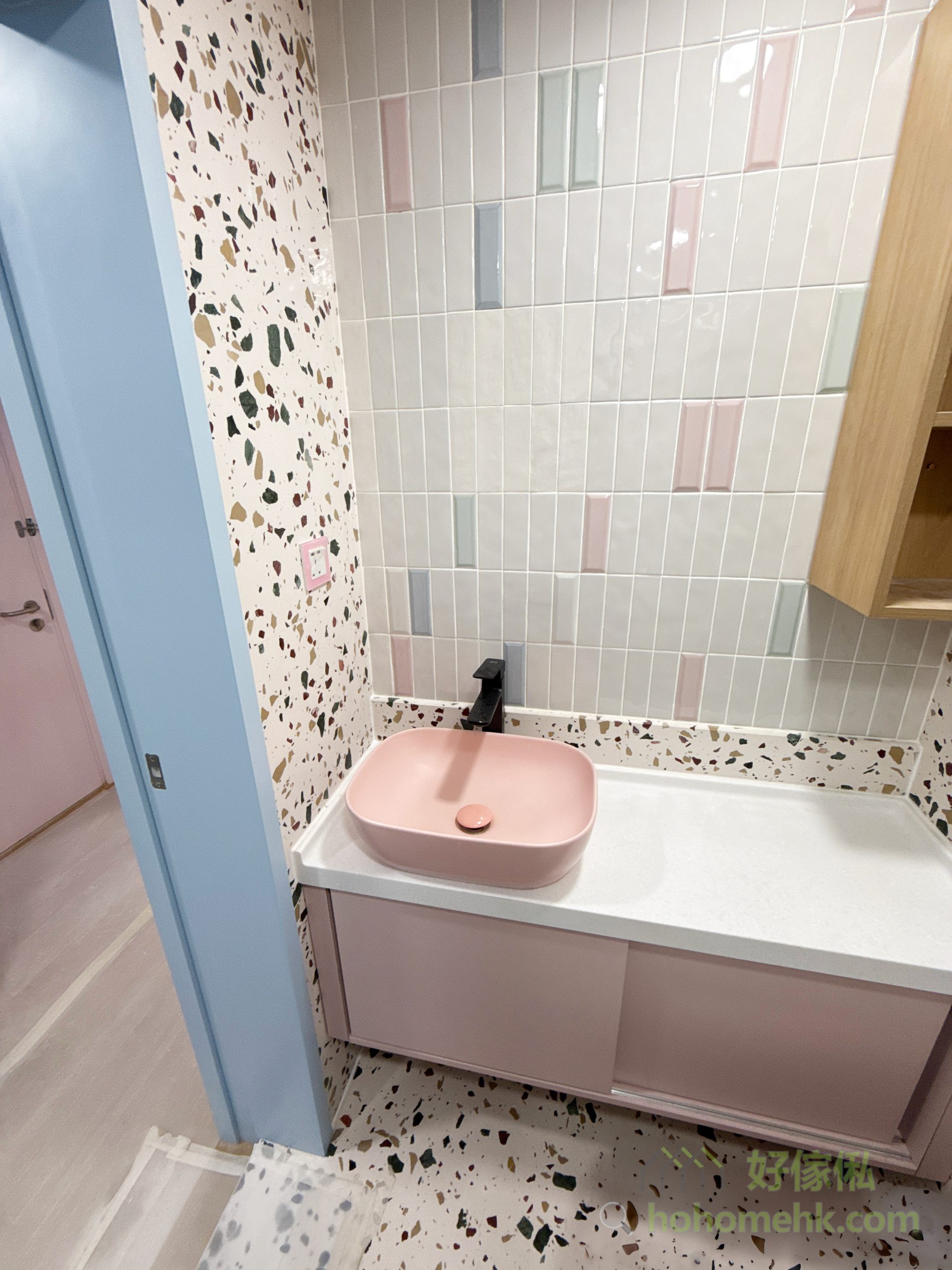 The cabinet body is treated with a baking varnish process, achieving a sweet light pink tone, adding a touch of romance and warmth to the bathroom. This design style not only integrates the macaron theme but also features high durability, moisture and water resistance, making it suitable for long-term use, while meeting personalized design requirements.