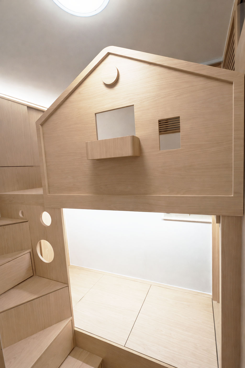 The wardrobe adopts a simple design and is in the same color as the treehouse bed, achieving a unified overall home style. The interior space is clearly divided. Whether it’s hanging clothes or folding them, they can all be easily stored, making home life more organized.The wardrobe adopts a simple design and is in the same color as the treehouse bed, achieving a unified overall home style. The interior space is clearly divided. Whether it’s hanging clothes or folding them, they can all be easily stored, making home life more organized.Our customization service is centered on flexible creativity and is specifically designed for small units in Hong Kong. From design to installation, a professional team will follow up throughout the process to ensure that every inch of space can be utilized rationally. Even the tiniest space can be transformed into a surprising home environment through our customization service.