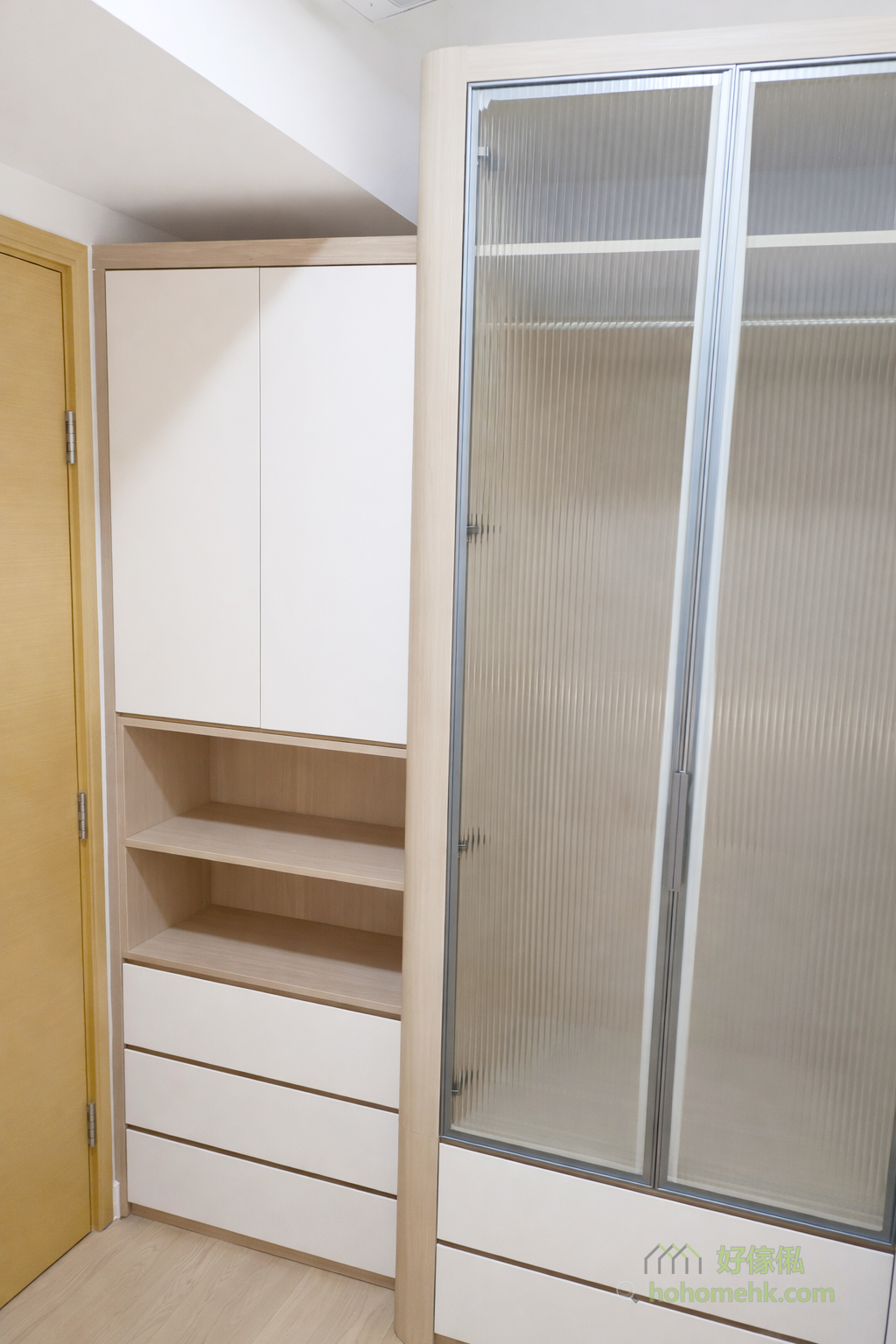 To meet the storage needs of different types of clothing, the wardrobe is specially divided into a folding area and a hanging area, and different depth designs are adopted. This ingenious layering arrangement can make full use of the limited space while keeping clothes neat and easily accessible, making daily life more convenient.