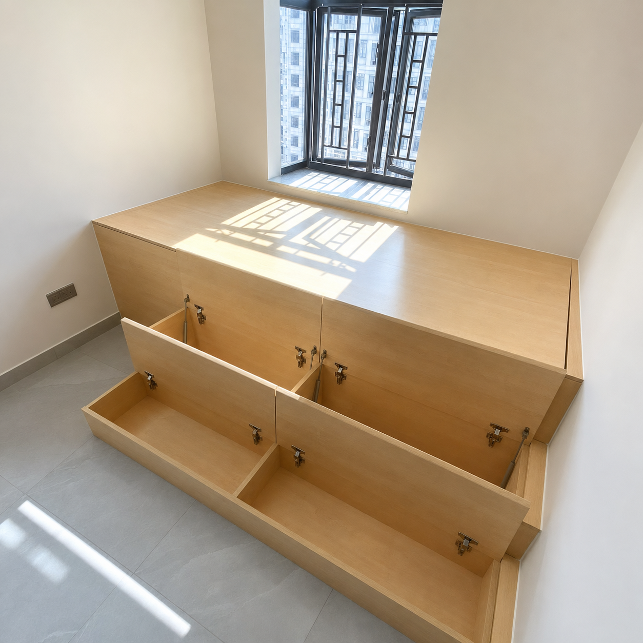 If you also want to make a platform bed with TV cabinet, please feel free to contact us to get your caprentry work done~!!