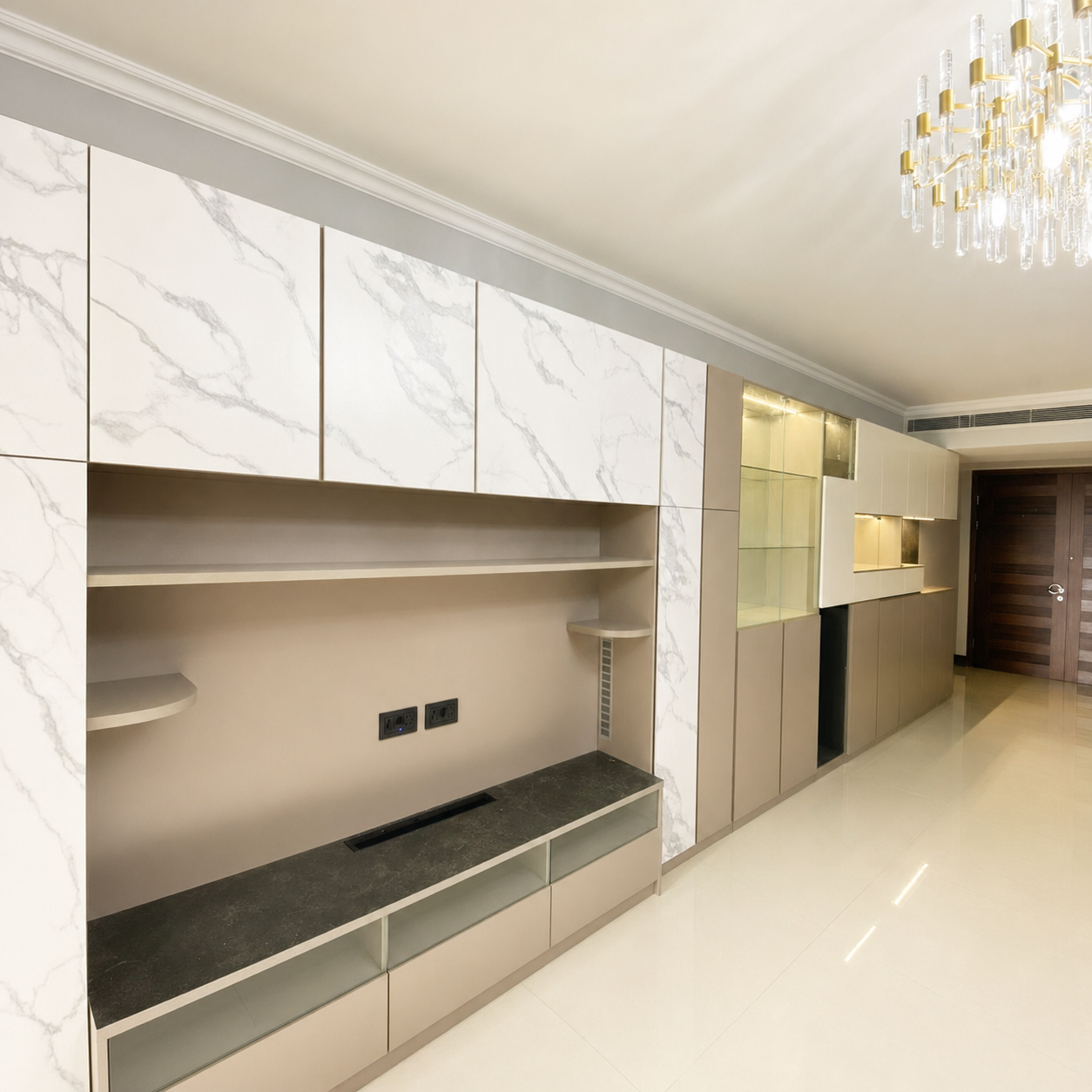 The empty part in the middle is used as a display cabinet, where you can place some floral ornaments for decoration.