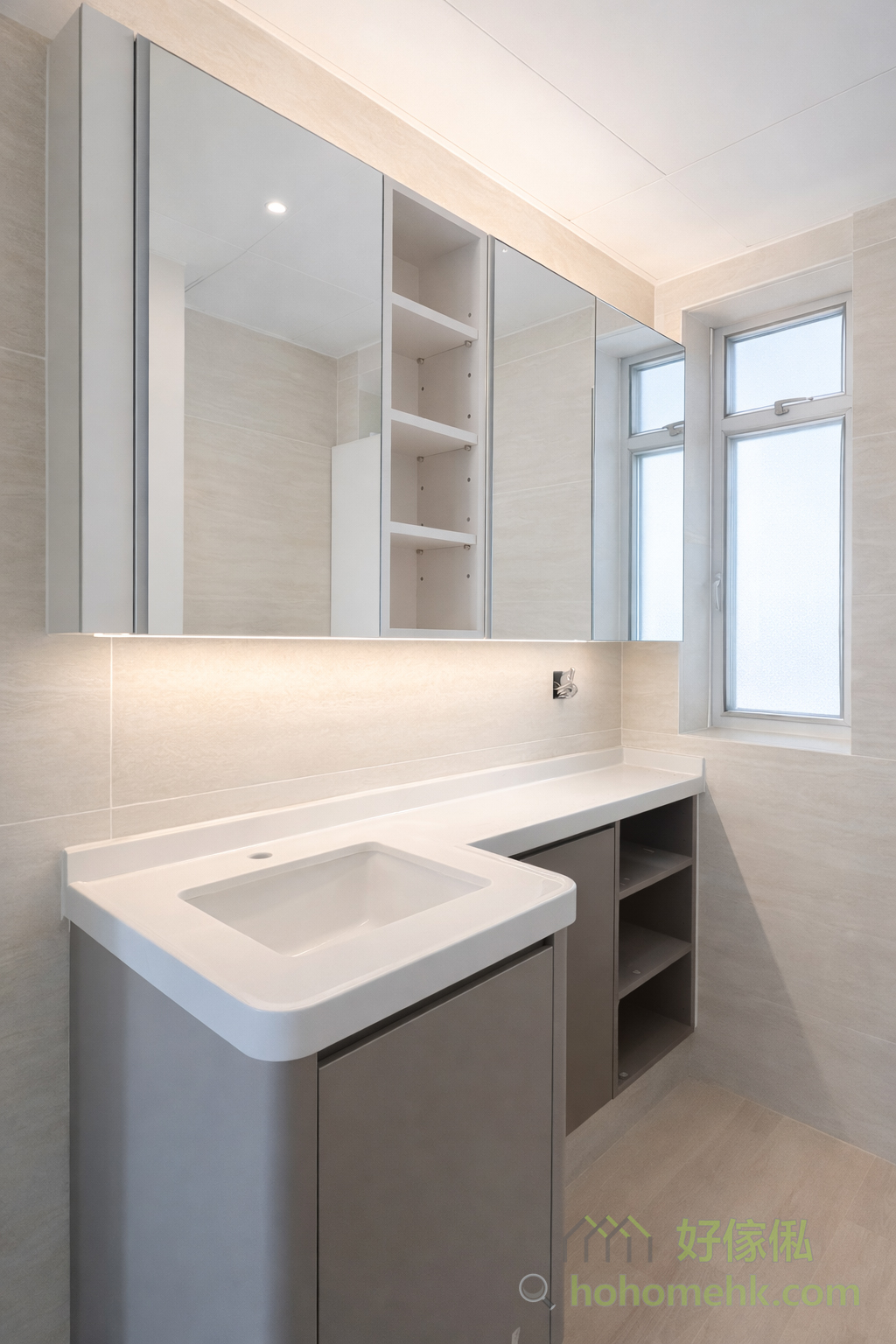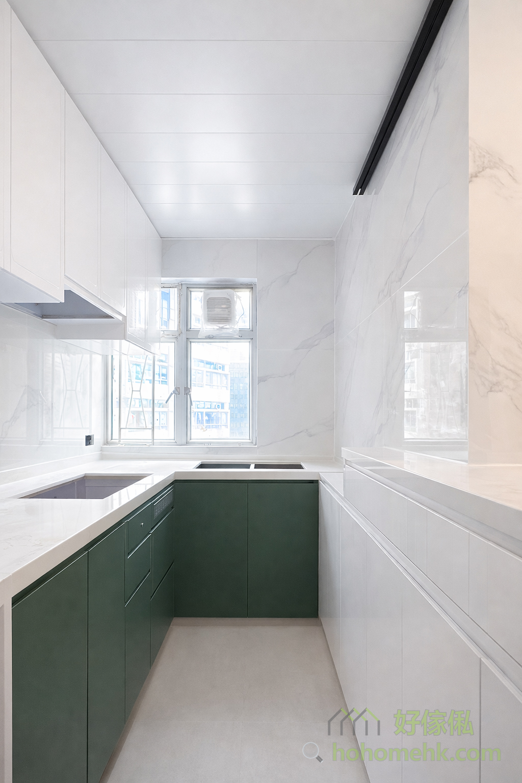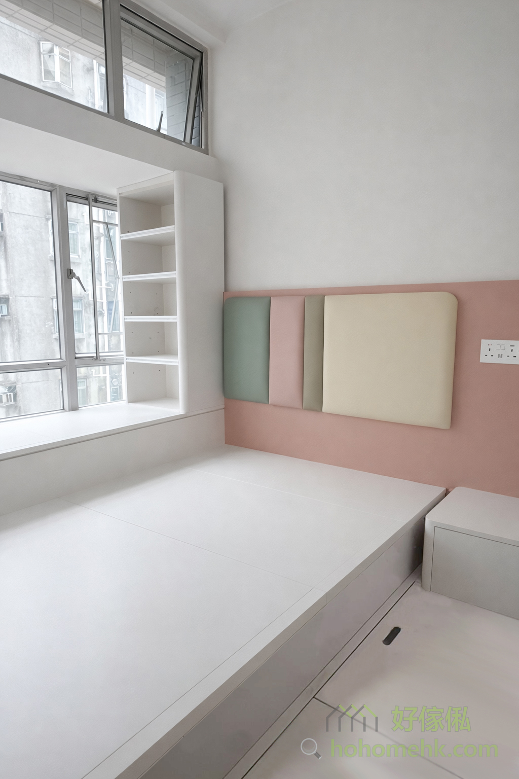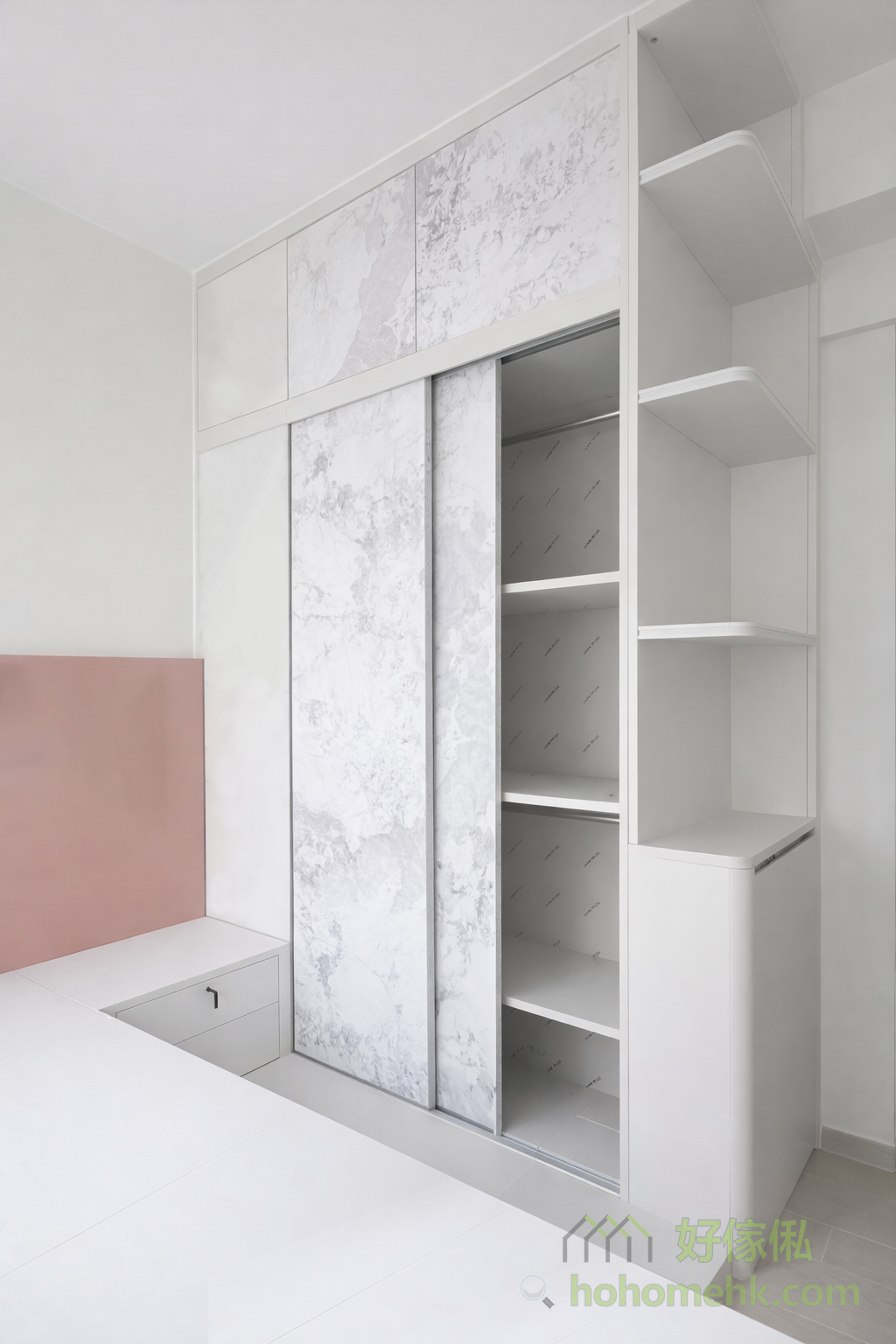 Between the kitchen and the entrance hall, a worker bed cabinet is set up as a partition, which not only provides a comfortable rest space for the worker sisters but also saves the construction cost of wall tiles, making full use of every inch of space. This design is practical and flexible, perfectly meeting the needs of Hong Kong families. The pure white color selection also echoes the furniture style of the kitchen and living room.Between the kitchen and the entrance hall, a worker bed cabinet is set up as a partition, which not only provides a comfortable rest space for the worker sisters but also saves the construction cost of wall tiles, making full use of every inch of space. This design is practical and flexible, perfectly meeting the needs of Hong Kong families. The pure white color selection also echoes the furniture style of the kitchen and living room.