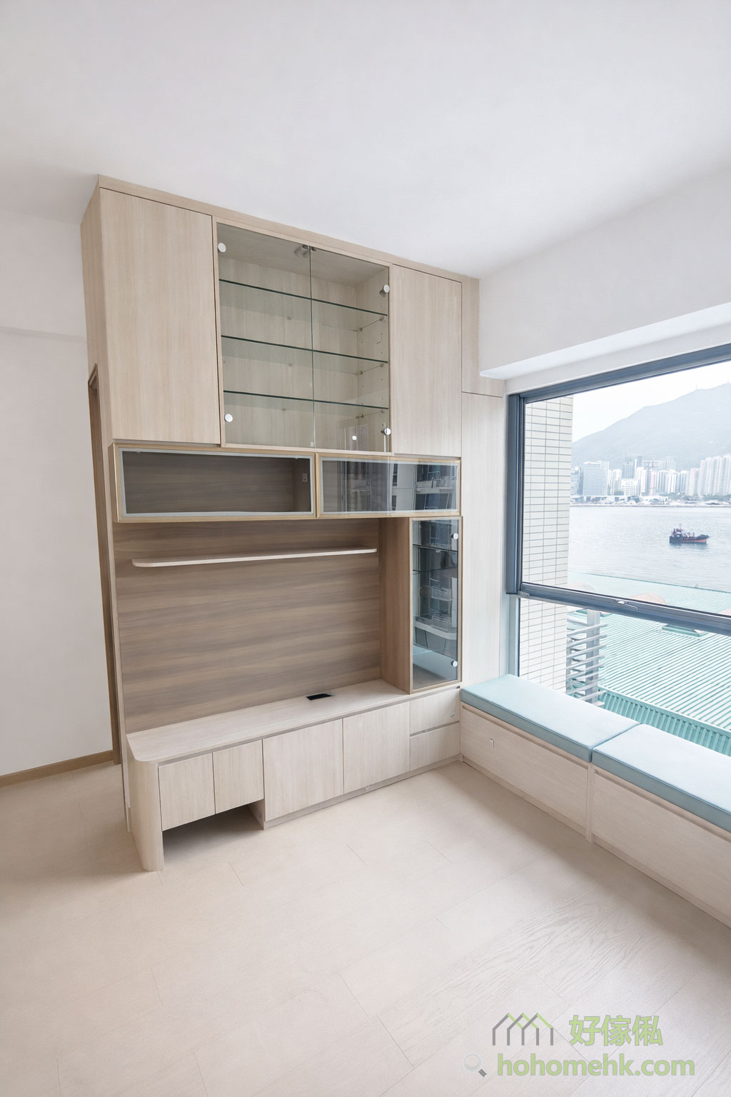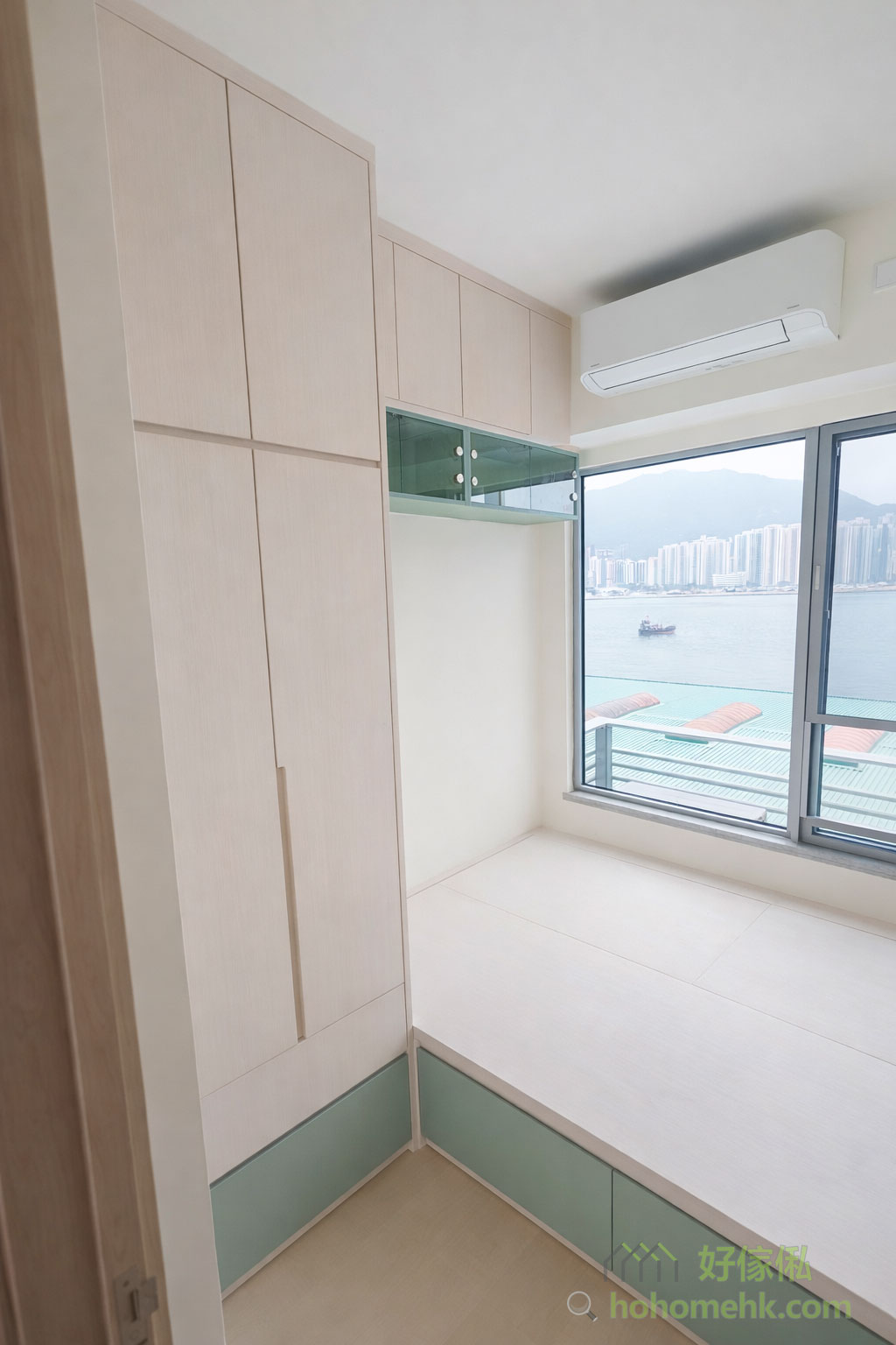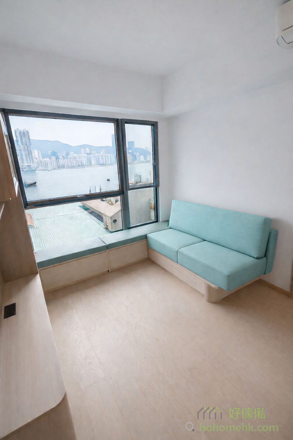 Units facing the sea are most suitable for custom-made furniture designs in lake green and blue-green, bringing the beautiful sea and sky views outside the window into the interior. In this case, the platform bed, wardrobe and sofa all incorporate elements of lake water green. This not only continues the natural feel of the outdoors but also brings a fresh and peaceful visual experience, making the entire living space more unified and stylish.