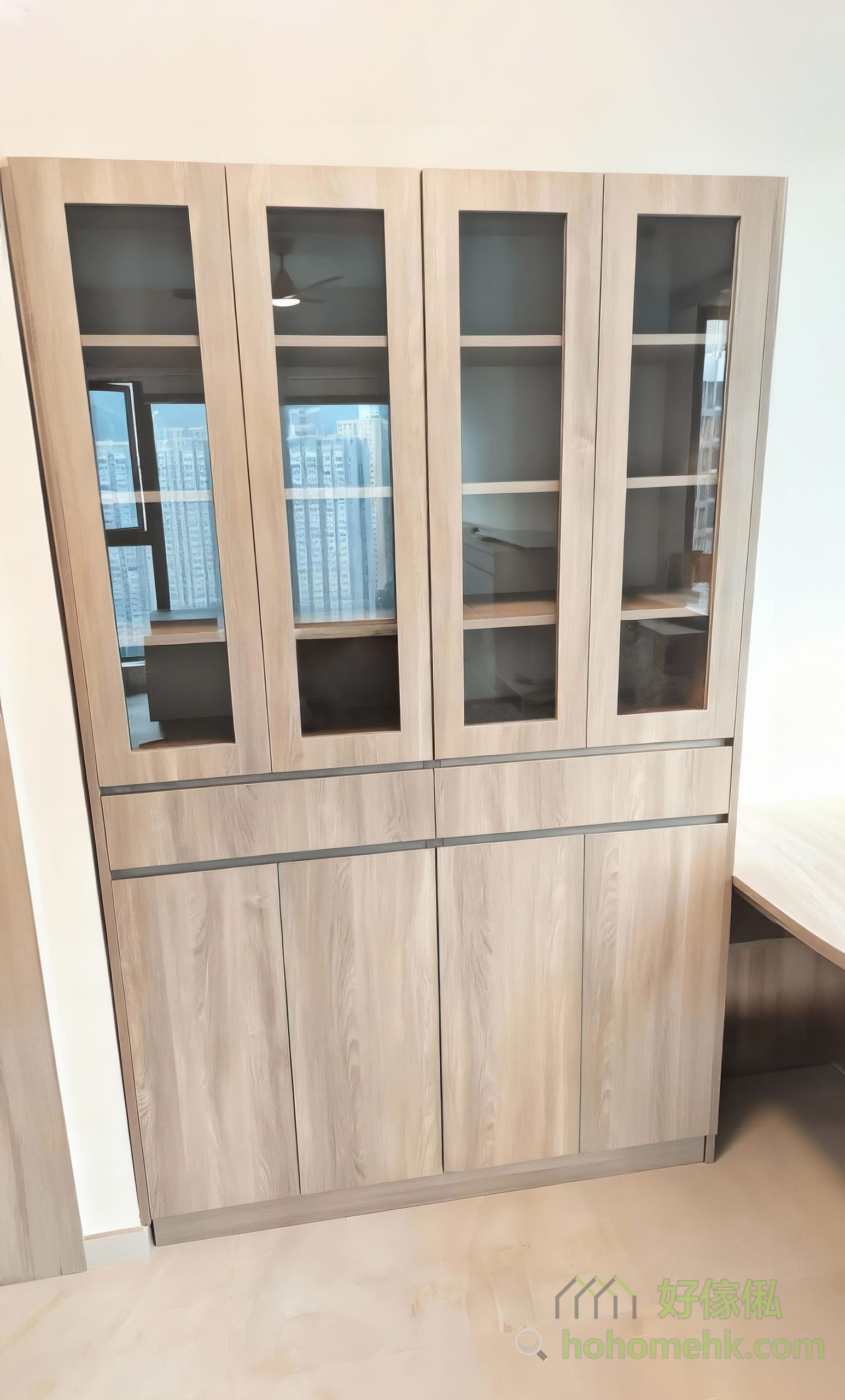 The backboard of the glass cabinet is specially designed with a mirror surface, which can reflect light and make the living room look more spacious and bright. This is a very considerate design detail for small-sized units in Hong Kong. It is both practical and can enhance the sense of space in the home.The backboard of the glass cabinet is specially designed with a mirror surface, which can reflect light and make the living room look more spacious and bright. This is a very considerate design detail for small-sized units in Hong Kong. It is both practical and can enhance the sense of space in the home.