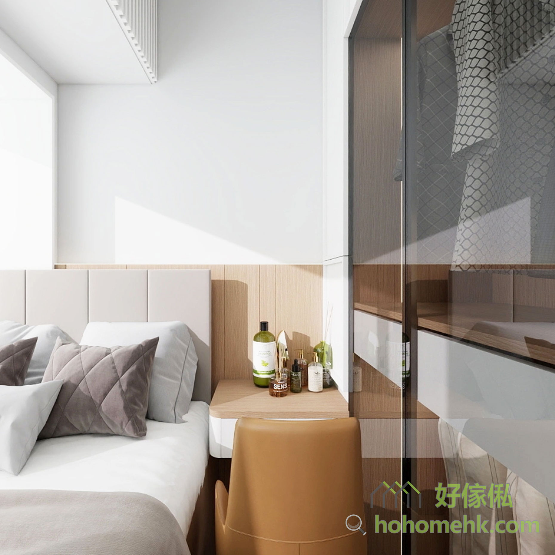 For small bedrooms in Hong Kong, designing the bed, dressing table and wardrobe together is the smartest choice. This customized design can maximize space utilization while maintaining overall aesthetics, allowing small rooms to also have the flexibility for multi-functional use.