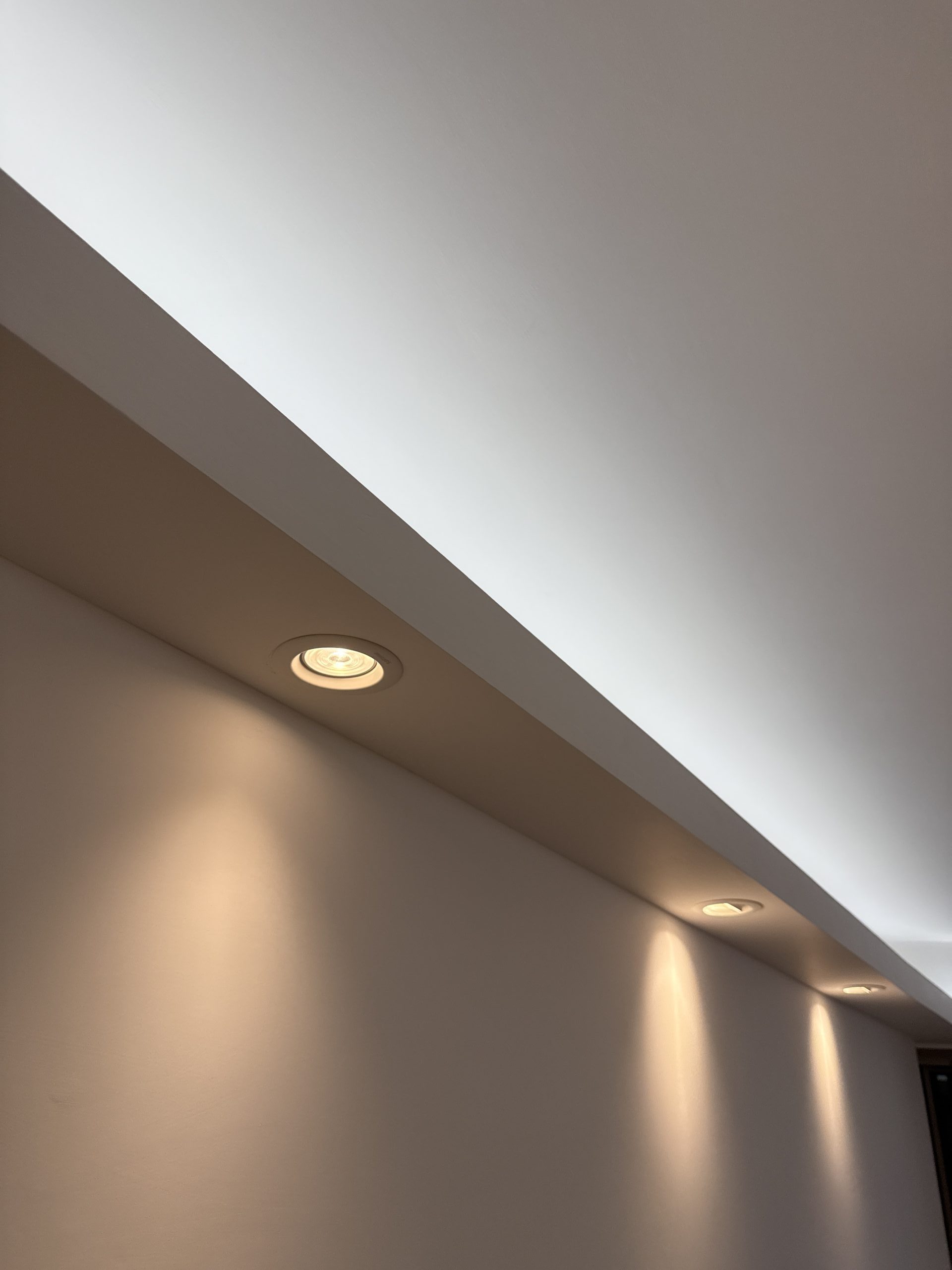 If you need a quotation for the decoration project, please contact our designer.The living room light slot project and ceiling light installation have been completed, and the living room has immediately turned Grand! The wooden board light slot in the living room, after being plastered with plaster, blends seamlessly with the wall and ceiling, creating a “light visible but no lamp” light-permeating effect. It can also be equipped with spotlights to enhance the Spotlight effect in certain Spaces, making it particularly suitable for use as a TV background wall and a display area for jewelry.