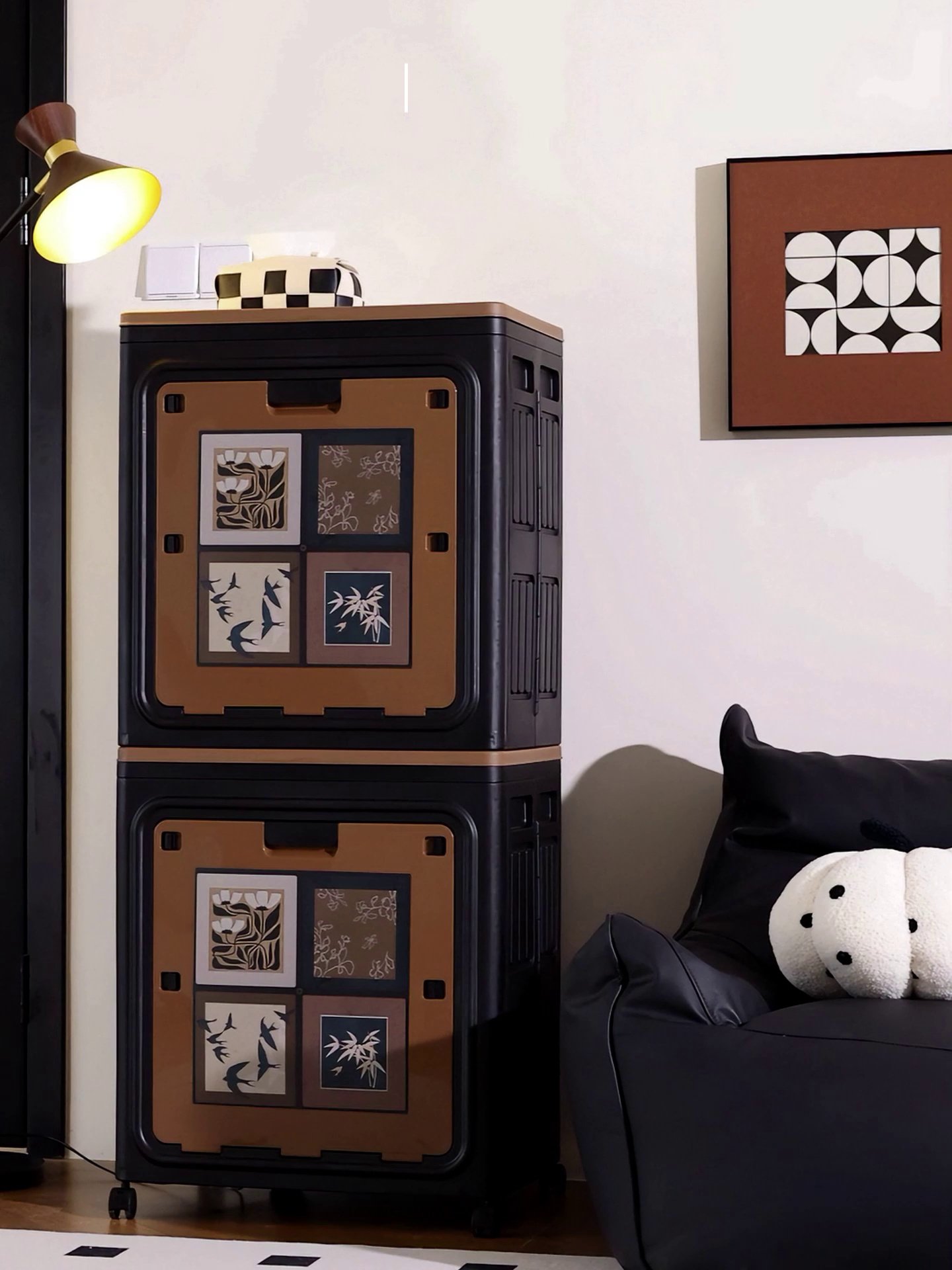 The retro design with decorative door panels makes it less cheap than ordinary plastic boxes. It goes well in the room, living room or by the window, and can be used for both storage and decoration at once.