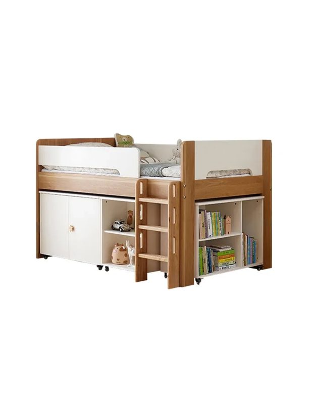 Under the bed, there is a dust-proof wardrobe, a storage cabinet and an open bookshelf. Shirts, toys and books all have a place to be placed, which is neat and easy to carry. There’s no need to buy another cabinet. It saves space and money, making it perfect for families who want something simple yet practical.